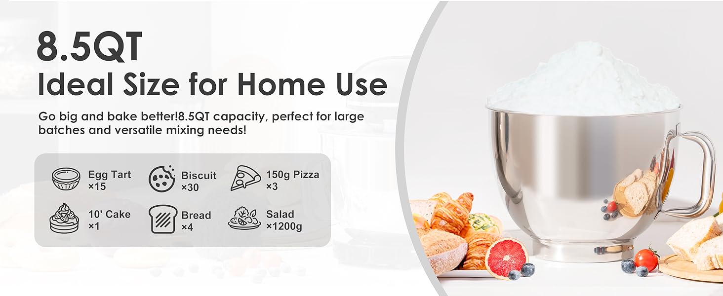 Upgrade 900W POWERFUL Dynamics, Better KNEADING Heavy Dough
