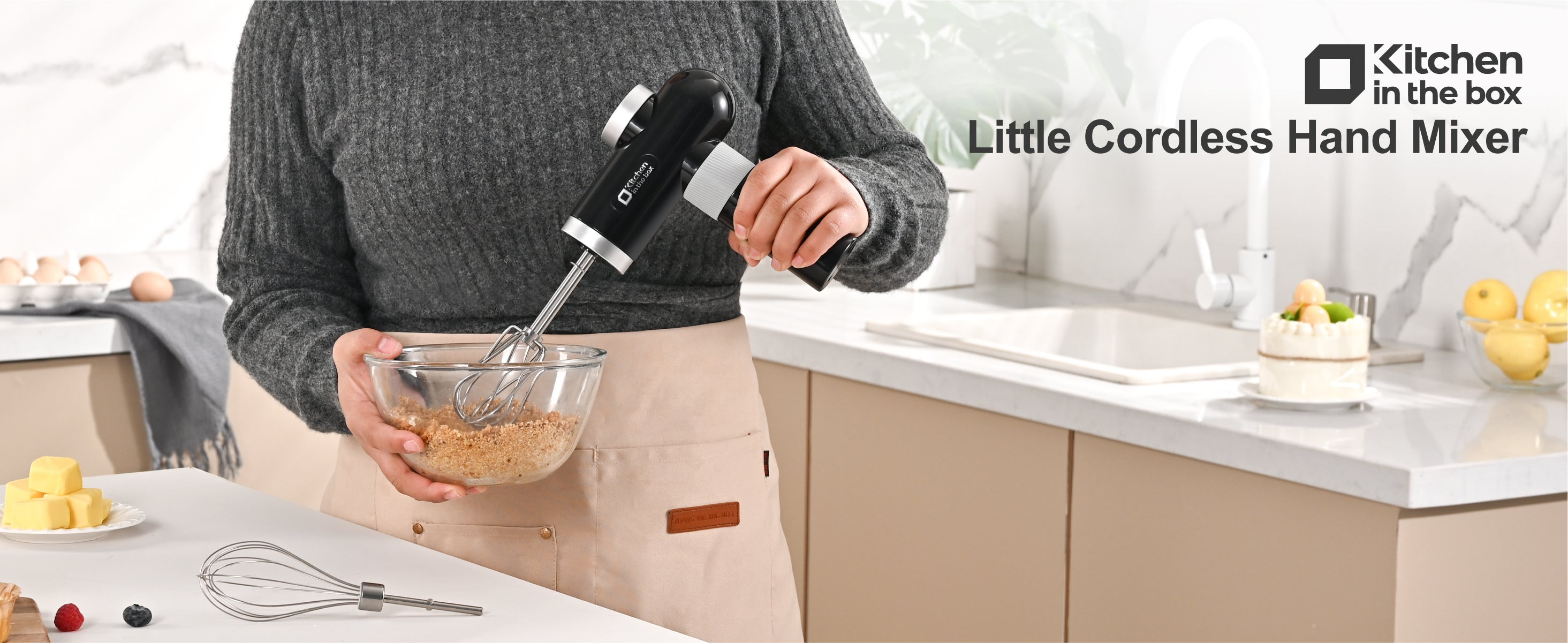 Electric Handheld Mixer with Whisks, Cordless, 6 Speeds, USB-C Charging, Knob Adjust, Digital Display