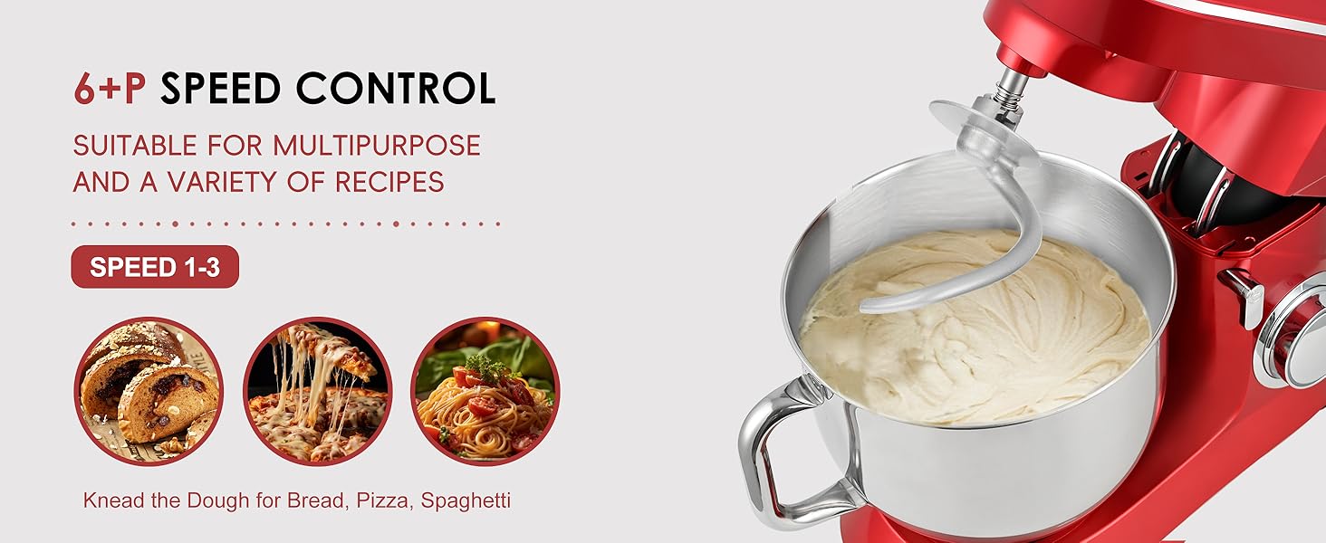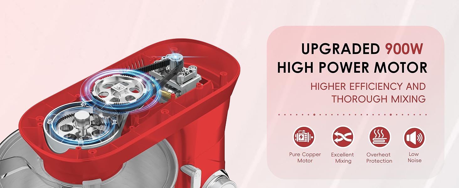 Let the sleek diamond-cut body add a modern, elegant touch to your kitchen! This kitchen electric stand mixer is built with a spacious 7.5QT stainless steel bowl and a powerful 900W motor, perfect for family baking, parties, and holiday gatherings, letting you mix bigger batches in one go.