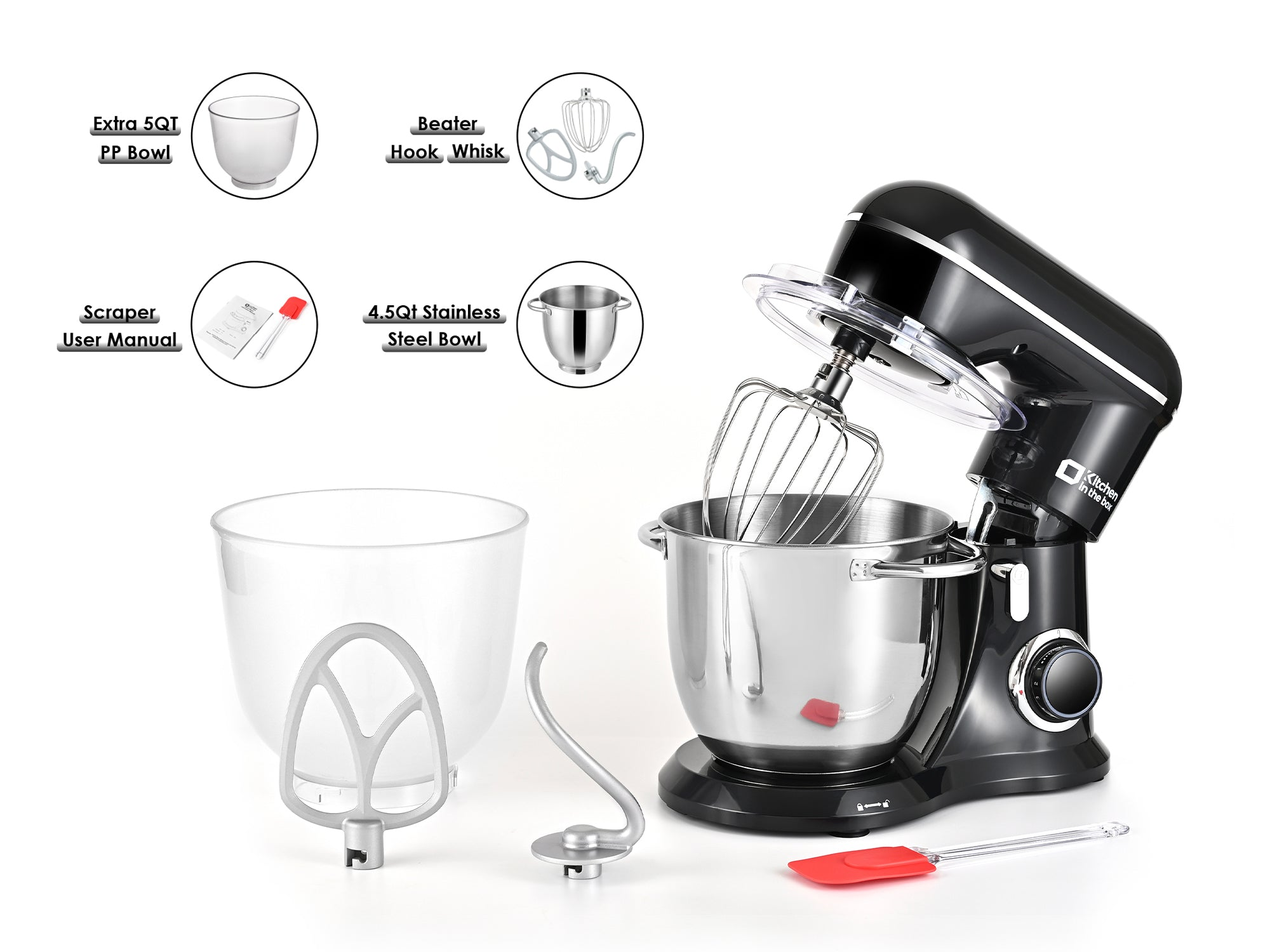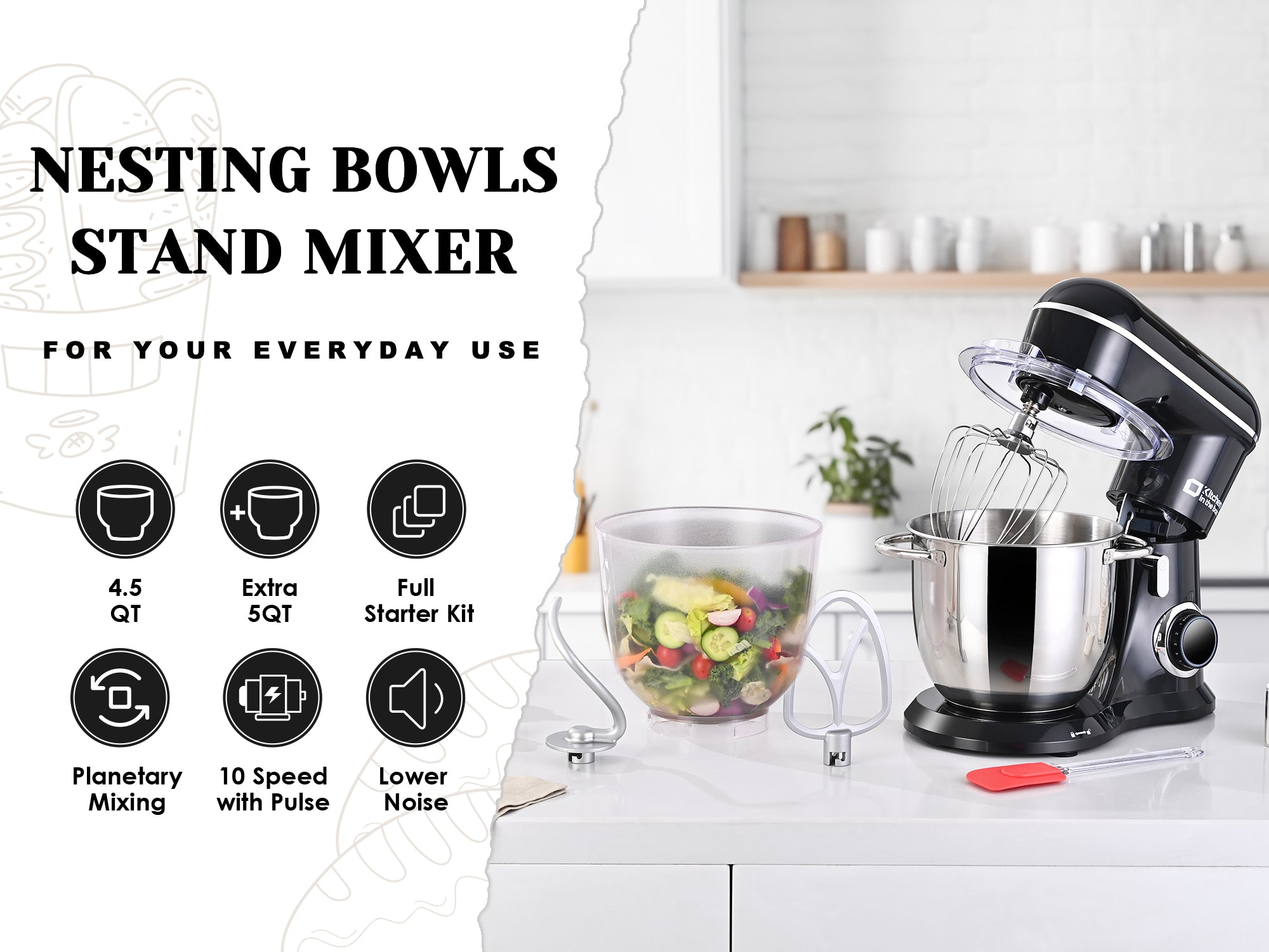 10 Speed Tilt-Head 4.5QT & 5QT Stand Mixer, Matte Food Mixer with Two Bowls, Egg Whisk, Dough Hook & Flat Beater for Daily Use